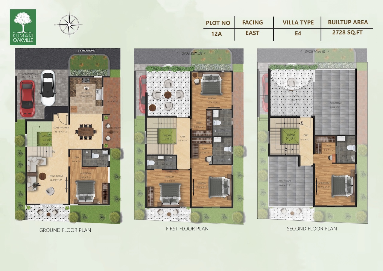 The built-up area of 4BHK Villas in Kumari Oakville Extension ranges from 2226 to 2390 Sqft.