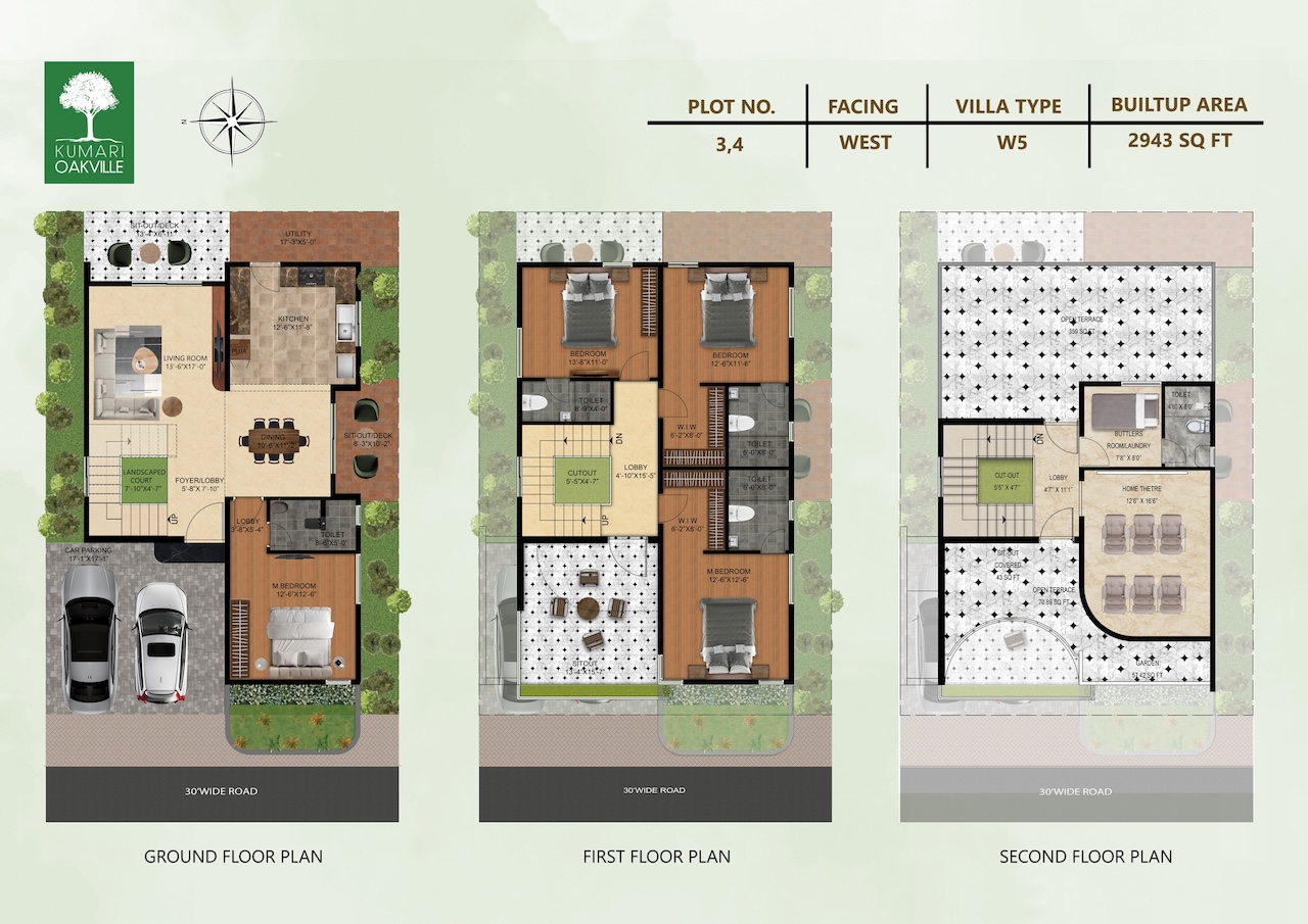 The built-up area of 5BHK Villas in Kumari Oakville Extension ranges from 2390 To 3019 Sqft.