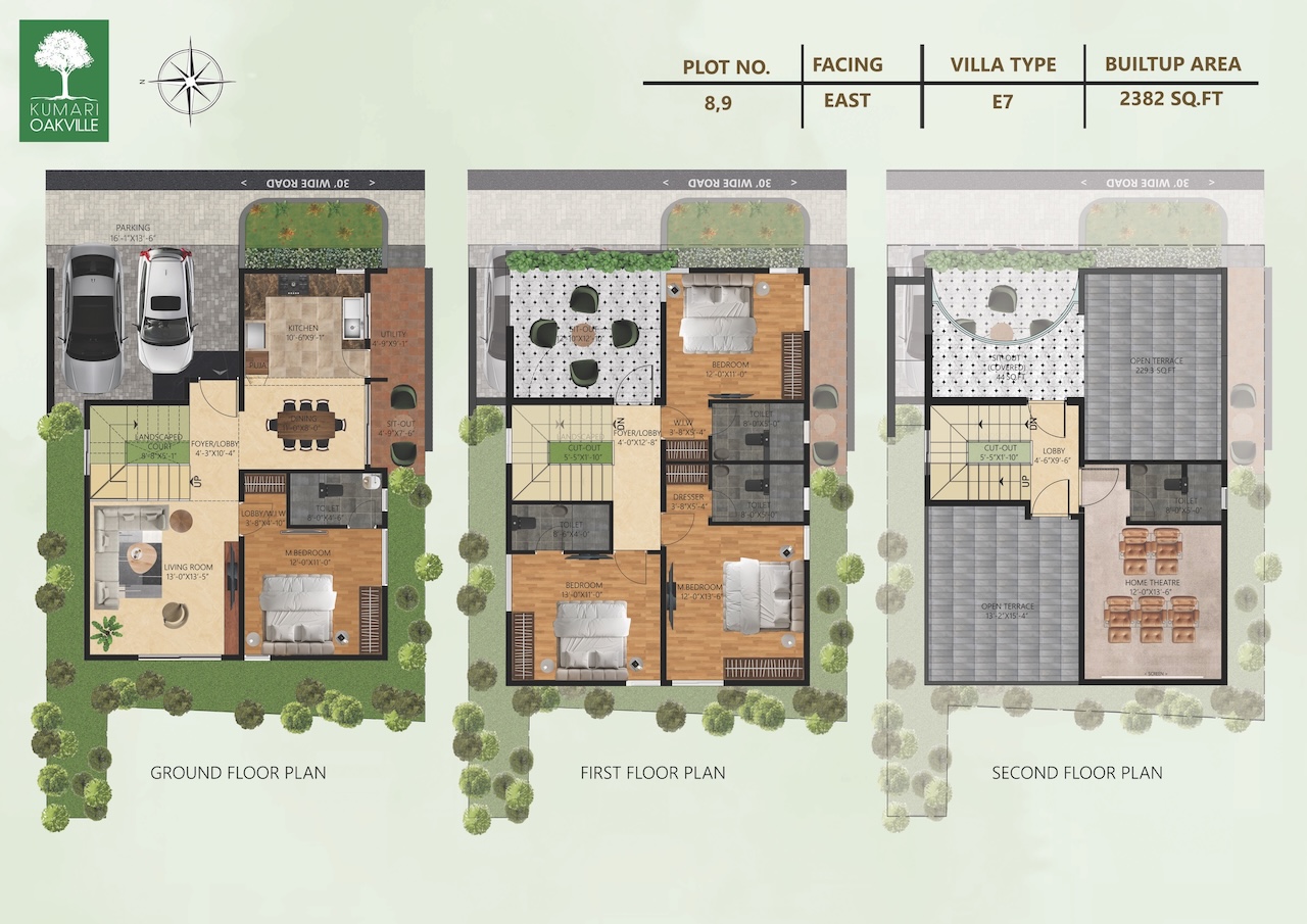 We know amenities play a large part in creating a home that’s a pleasure to live in. At Kumari Oakville, we offer villas with Private Home Office, Spacious Bedrooms, Kitchen, Living Hall, Wide View Balconies, Large Terrace Area, 40+ Lifestyle Amenities, A World Class 16,000 Sqft Clubhouse & 45% Green Open Space, Facing 100 Acres Forest Land to meet all your recreational needs.